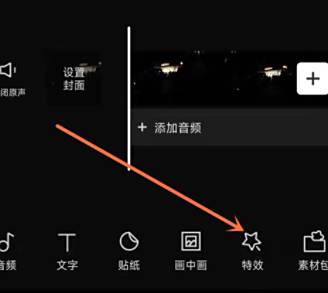 2、在创作界面的下方,点击特效按钮,进入页面寻找特效。