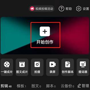 1、打开登录进剪映的界面,点击开始创作,选择创作素材。