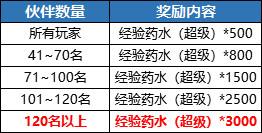 1月25日0:00-1月31日23:59活动期间,玩家收集伙伴数量达到相应条件,即可领取经验药水,最多可达8300个,兵不血刃收割海量战斗经验,你只用担心吃药吃到手抽筋!