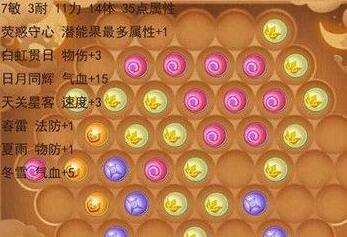 潜能果属性:7敏3耐11力14体一共35点属性。可以看到月宫在潜能果属性方面主要选择还是比较平均的,这也是物理攻击门派潜能果的最佳搭配方案。