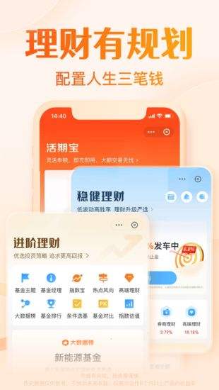 专业理财就上天天基金!天天基金是上市公司东方财富全资子公司,首批独立基金销售机构之一,具备机构审核的合规资质,平台交易更放心。理财产品多,业内基金多品类覆盖,基金数量超1.4万只;基金交易快,便捷开户、交易稳定,理财安全放心;客户服务好,全年无休,7*24小时客服不间断。